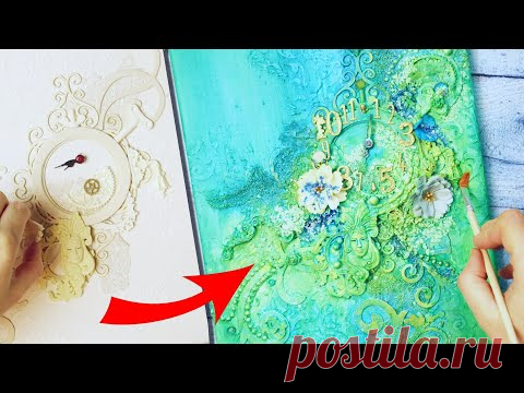 Декоративное панно на стену с часами своими руками в технике микс медиа / декор для дома часы