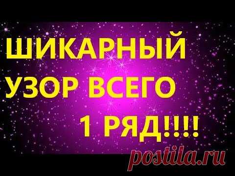 Изображение с фиолетовым фоном и жёлтым текстом, который гласит: "Шикарный узор всего 1 ряд!!!" с множеством мелких искр и звезд вокруг текста.