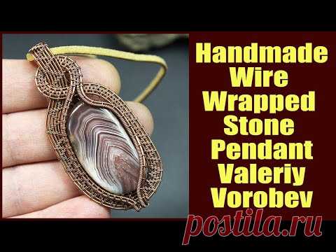 Handmade Wire Wrapped Stone Pendant Valeriy Vorobev. Handmade wire weaving jewelry.