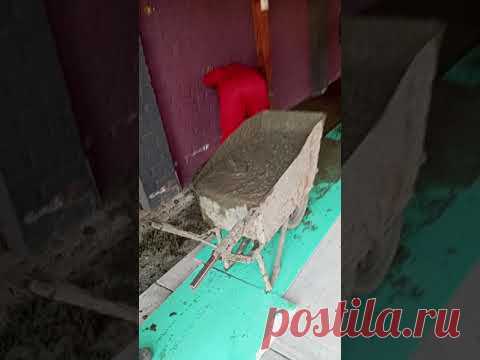 На фотографии изображен кусок бетона на поддоне, который, похоже, используется для капитального ремонта или строительства. Позади находится красная пожарная гидрант. Сцена выглядит как строительная площадка или место с ремонтными работами.