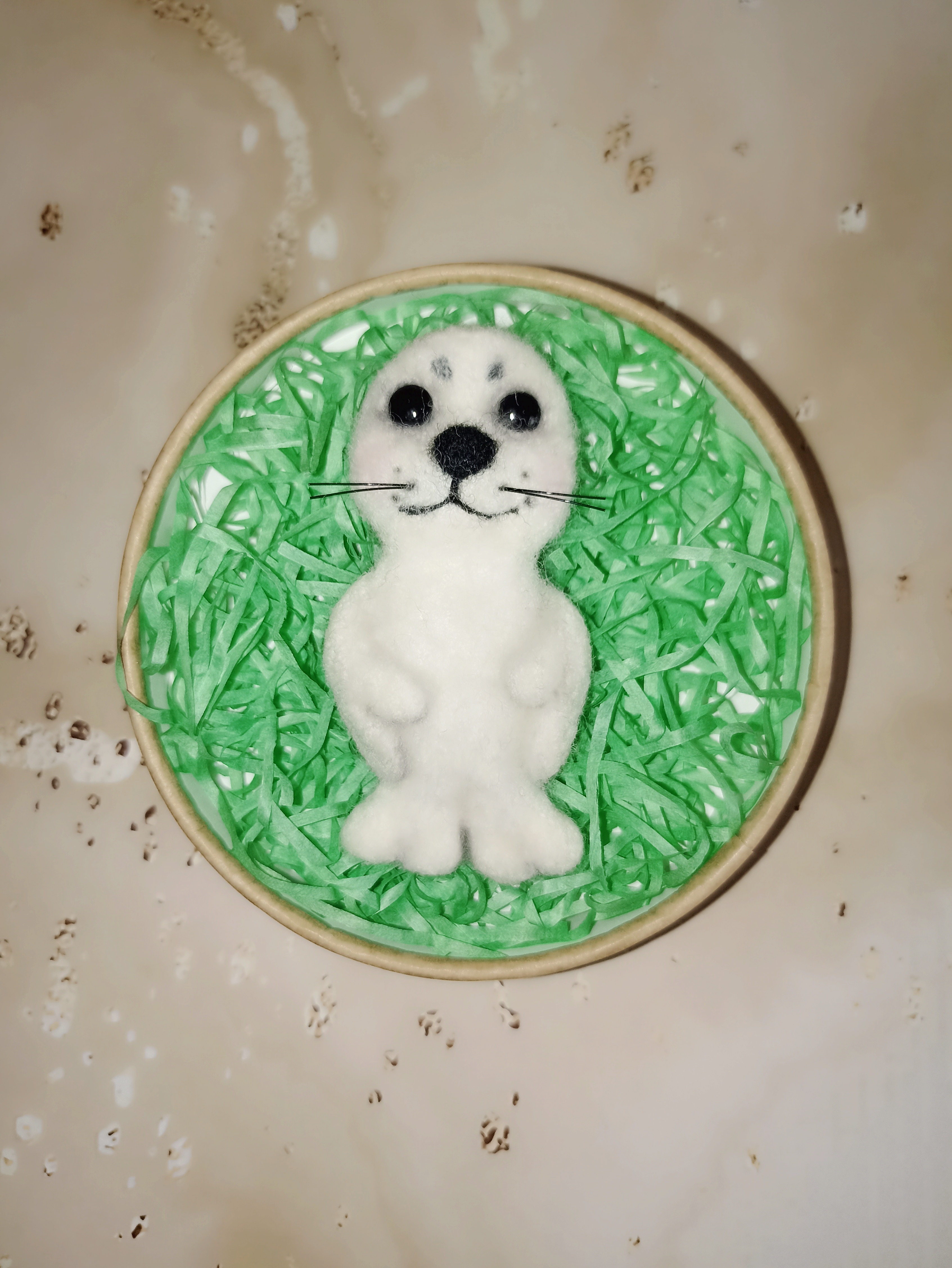 Тюлень брошь из овечьей шерсти в технике сухого валяния фелтинг