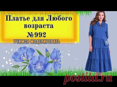 Изображение представляет собой рекламу платья с моделью, демонстрирующей голубое платье. Вверху есть текст, который гласит: "Платье для Любого возраста №992". Видна ссылка "poshiv.ru", указывающая на сайт, где, вероятно, можно приобрести платье.