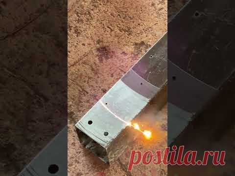 На изображении показан процесс сварки металлических деталей, где виден яркий свет от сварочной дуги и искры. Работы проводятся на темном фоне, что подчёркивает световые эффекты сварки.