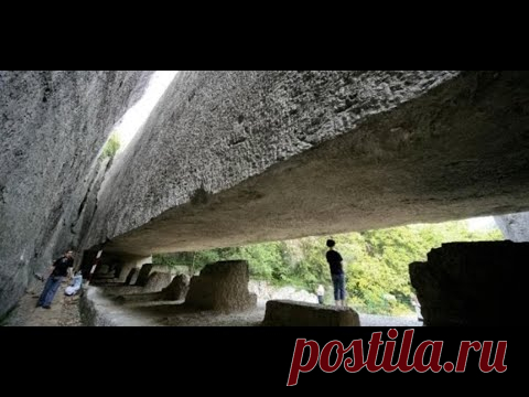 На изображении пещера или скальное укрытие с некоторыми людьми, исследующими структуру. Свет проникает сверху, подчеркивая текстуру камня.
