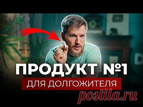 Мужчина с прищуром смотрит в сторону и показывает маленький предмет между пальцами. Есть красная стрелка, указывающая на предмет и текст на русском, который гласит: "ПРОДУКТ №1 для долгожителя postila.ru". Фон изображения - интерьер комнаты.