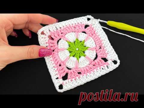ЛЕТНИЙ ЦВЕТОК ВЯЗАНИЕ КРЮЧКОМ КВАДРАТ