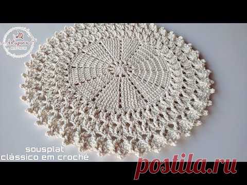 Классический вязаный крючком салфетка или плоское блюдо (sousplat), с изысканным узором, представленное на светлом фоне.