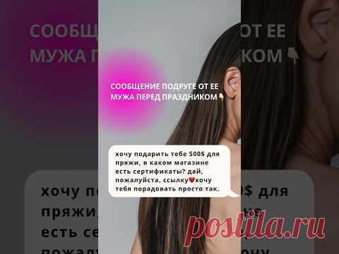 Изображение демонстрирует скриншот переписки, где человек сообщает о желании подарить сумму в 500$ и просит указать магазин для покупки подарочного сертификата. Также присутствует часть лица женщины с видом сбоку.