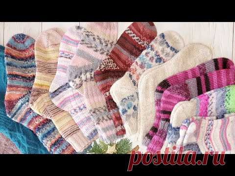 Коллекция разноцветных вязаных носков на деревянном фоне
