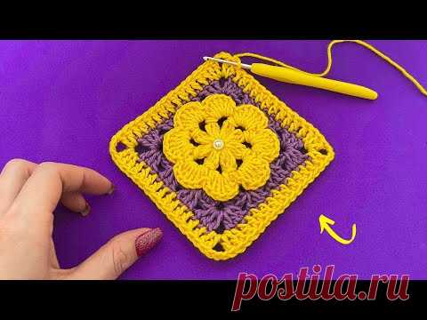 КВАДРАТ С КРАСИВЫМ ЦВЕТОМ ВЯЗАНИЕ КРЮЧКОМ
