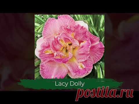 На изображении виден цветок с ярко-розовыми лепестками и желтыми тычинками. Внизу есть текст "Lacy Dolly" на зелёном фоне, а также водяной знак "postila.ru".