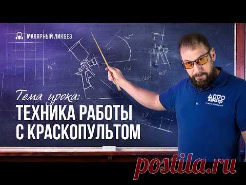 Мужчина в очках стоит у доски, обращенной лицом к камере. На доске написана тема урока "Техника работы с краскопультом" и нарисованы различные схемы. Мужчина указывает палкой на одну из схем. В правом верхнем углу изображения находится логотип, а внизу - еще один текст: "Мастерская Миксея".