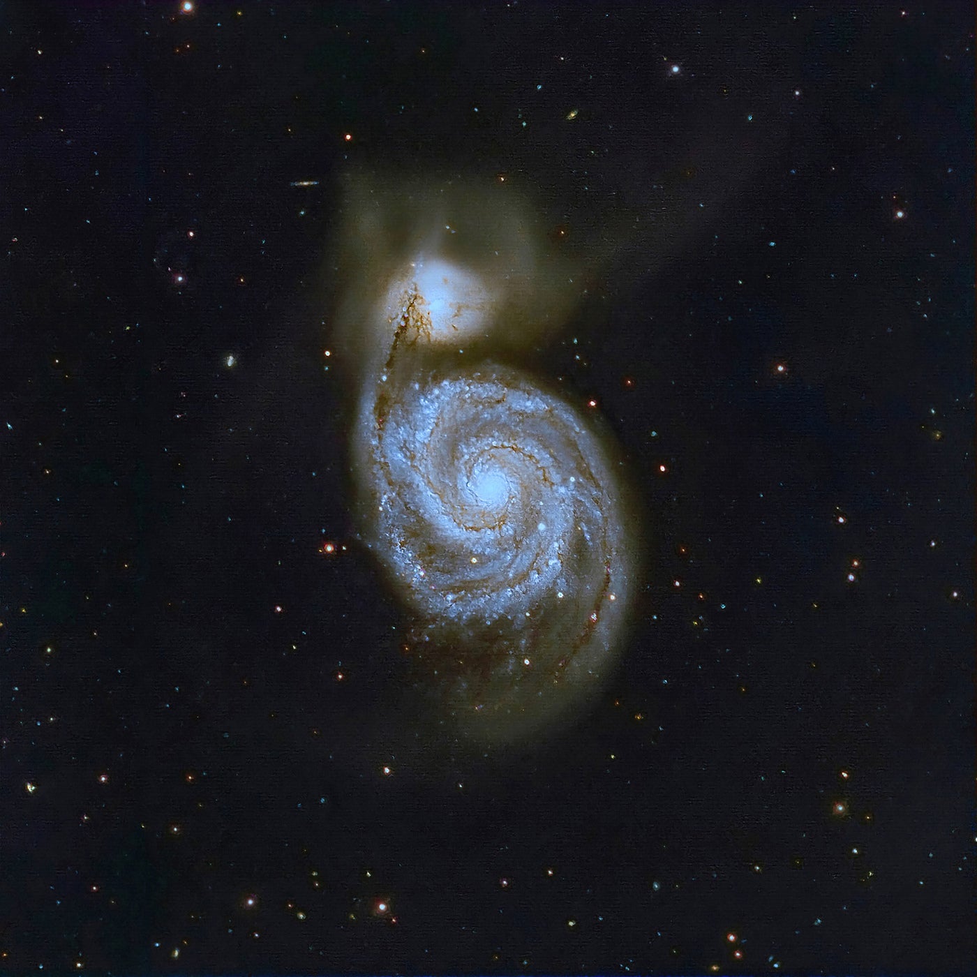 На изображении запечатлена впечатляющая спиральная галактика с ярко выраженными спиральными рукавами, окруженная тёмным космическим пространством и звёздами различной величины.