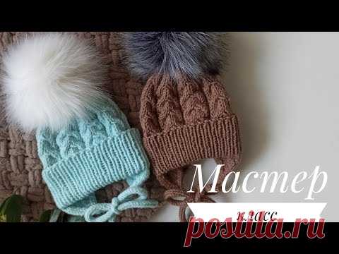 Шапочка для новорожденного спицами на 0-3 месяца.. Подробный мастер класс