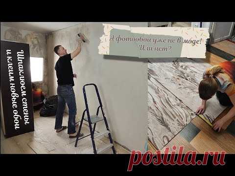 Долой дешёвые обои, преображение гостиной/Ремонт ГОСТИНОЙ часть 2 /Шпаклюем стены, клеим фотообои