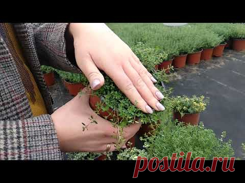 На изображении женские руки осторожно держат маленькие растения, возможно, для пересадки. За растениями видна серия горшков с зеленью, расположенных на открытом воздухе.