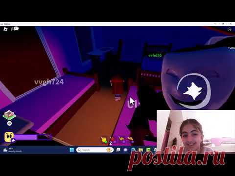 На изображении показан скриншот видеоигры с фиолетовыми и синими тональностями. В углу изображения виден небольшой вебкам-окно с изображением улыбающейся девушки. Игровой интерфейс содержит различные пользовательские значки и индикаторы.