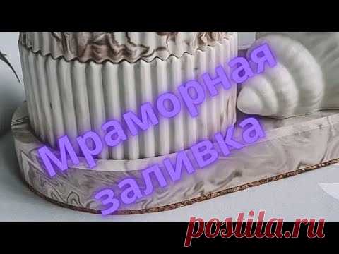 На изображении виден торт с надписью "Мраморная заливка". Торт оформлен в стиле мраморной текстуры, украшенный белым кремом, который создает эффект мрамора.