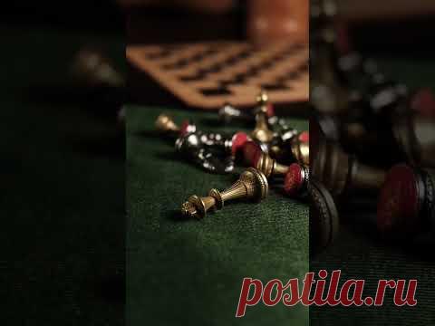 Изображение шахматной доски и опрокинутых шахматных фигур на темном фоне. Фокус сосредоточен на одной из фигур короля, лежащего на зеленом сукне.