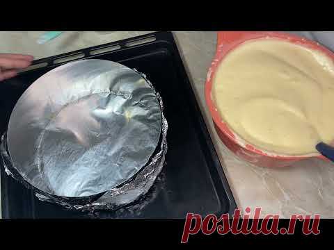 На изображении представлен процесс приготовления выпечки. Есть форма, покрытая фольгой, помещенная на противень, и сосуд с тестом справа, из которого ложкой выкладывают содержимое. Всё указывает на то, что кто-то готовит кулинарное изделие.