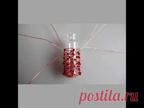#shorts Оплетка флакона медной проволокой с бисером. Полный МК на канале, ссылка в описании