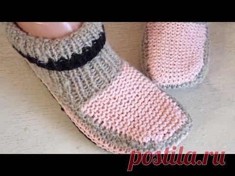 Простые следки - тапочки спицами. Из остатков пряжи. МК.
