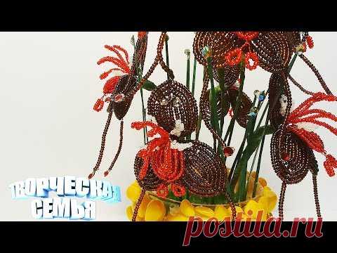 Цветы из бисера. Орхидея из бисера "Орхидея Дракула" МК, ✔️Beaded flowers, Orchid Dracula