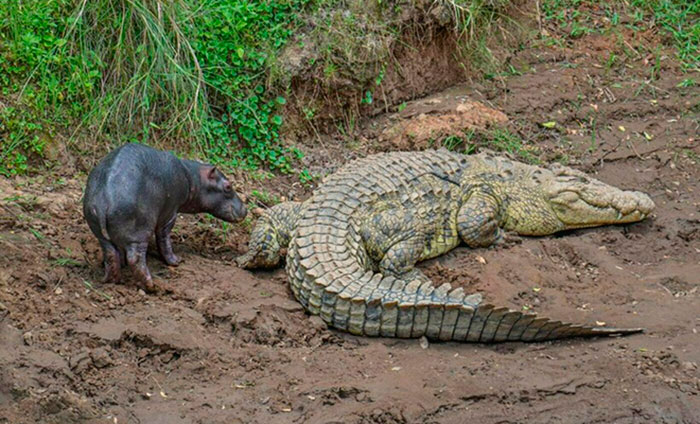Почему крокодилы иногда нянчат маленьких бегемотов (фото, видео)
