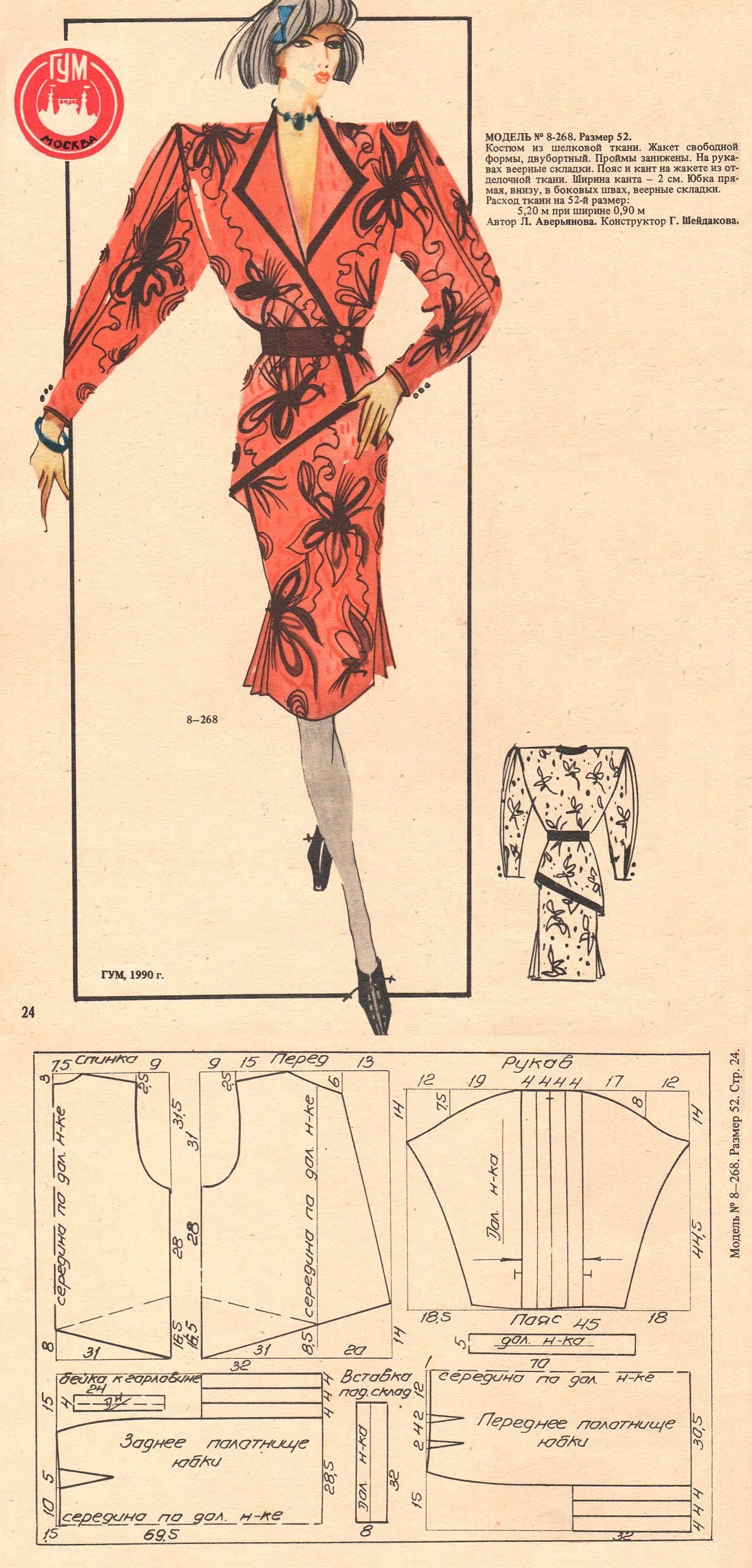 Костюм из шелковой ткани 52 размер (ГУМ 1990г)