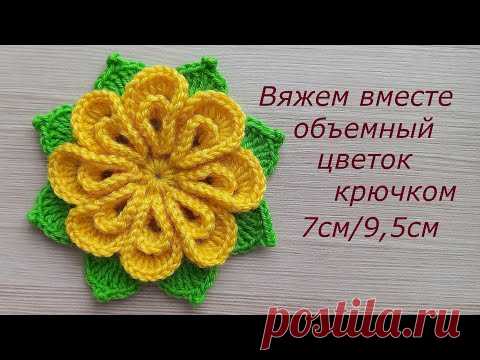 Красивый цветок крючком с листиками. Вязаные цветы крючком. Вязание крючком Crochet flowers tutorial