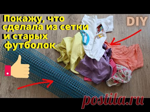 Взяла садовую сетку и старые футболки и сделала чудесную вещь, Своими руками, Идеи из старых вещей