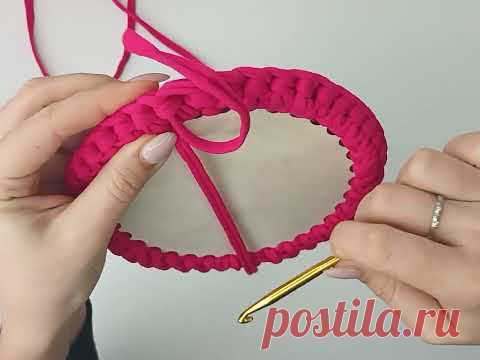 Корзинка из трикотажной пряжи с деревянным донышком крючком. Часть 1
