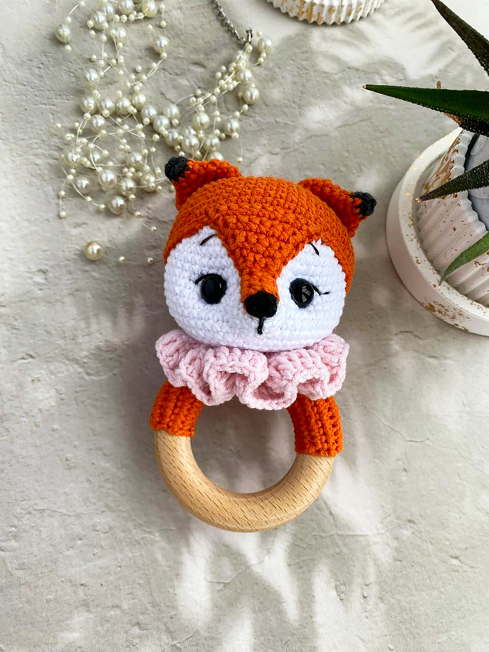 PDF Погремушка Лисичка крючком. FREE crochet pattern; Аmigurumi toy patterns. Амигуруми схемы и описания на русском. Вязаные игрушки и поделки своими руками #amimore - лиса, лисица, лисёнок для малышей, погремушка в виде лисичка из обычной пряжи.