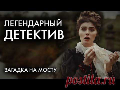 Изображение женщины в историческом или театральном костюме, выражающей испуг или ужас. Верхняя часть изображения содержит текст на русском языке: "ЛЕГЕНДАРНЫЙ ДЕТЕКТИВ" и "ЗАГАДКА НА МОСТУ". Изображение, вероятно, связано с каким-то детективным рассказом или спектаклем.