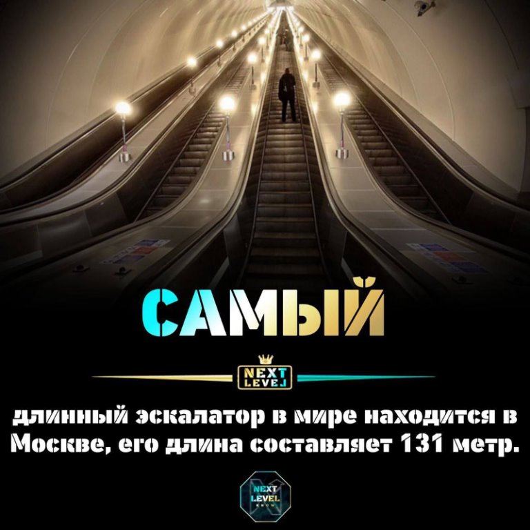 Самый длинный эскалатор в мире находится в Москве, его длина составляет 131 метр.