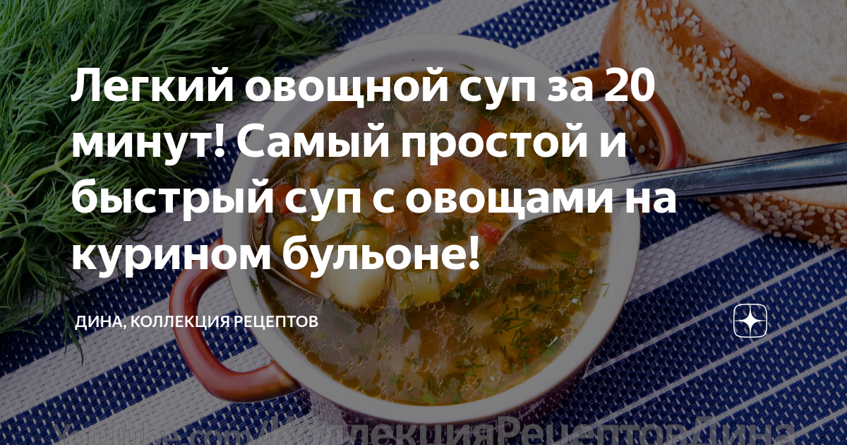 Легкий овощной суп за 20 минут! Самый простой и быстрый суп с овощами на курином бульоне! Статья автора «Дина, Коллекция Рецептов» в Дзене ✍: Овощные супы - это прекрасная еда в любое время года и рецептов таких супов огромное разнообразие!
