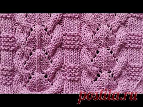 На изображении представлен образец розового вязаного трикотажа с узором из переплетенных петель. Узор выглядит трехмерным и создает ритмичный декоративный эффект.
