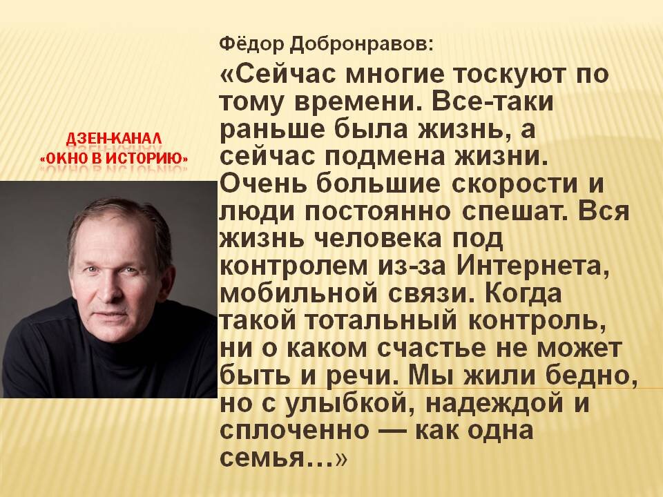Думаю, эти слова актёра Фёдора Добронравова о жизни в СССР поймут миллионы...Просто до слёз | Окно в историю | Дзен