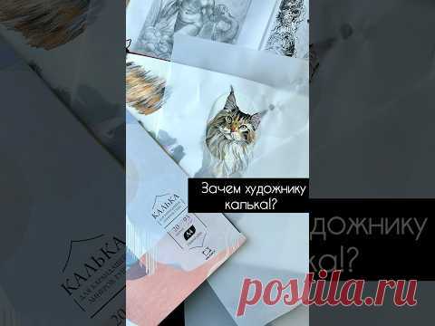 На изображении видны различные рисунки кошек. Это похоже на часть портфолио или коллекцию работ художника. В нижней части фотографии находится название "КАЛИКА", вероятно, это подпись или бренд художника. На верхней части картинки нарисована кошка с реалистичными деталями и выразительными глазами. Надпись на русском языке гласит: "Зачем художнику калька?", что может указывать на диалог или вопрос, связанный с творческим процессом создания рисунков.