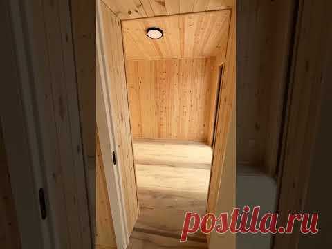 Деревянный коридор или переход с деревянными стенами, полом и потолком. В интерьере преобладает светлая древесина.