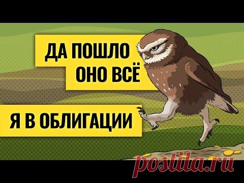 На изображении представлен комический рисунок совы с текстом на русском языке. Сова делает удивленное или саркастическое выражение, а вокруг нее использованы звукоподражания. Текст на изображении гласит: "ДА ПОШЛО ОНО ВСЁ Я В ОБЛИТАЦИИ". Фон разделен на две полосы с разными оттенками зеленого цвета, а внизу на изображении есть водяной знак "postila.ru".