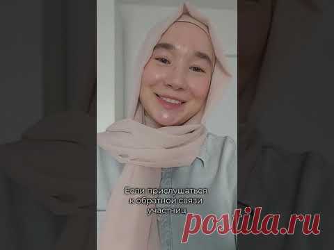 На изображении женщина с улыбкой, одетая в хиджаб. На фоне видны стены в нейтральных тонах. На изображении также есть текст, возможно, являющийся частью цитаты или сообщения.