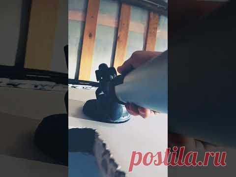 На изображении видна рука человека, взаимодействующая с черным предметом, который кажется присоской или держателем с присоской. Фон размыт и нечеток, но видны какие-то строительные конструкции или элементы интерьера, возможно деревянные балки.