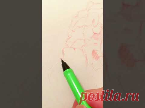 На изображении представлен маркер зеленого цвета, который касается бумаги. На бумаге видны размытые красные следы, похожие на набросок или незаконченный рисунок.
