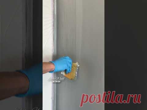 Рука в синей перчатке окрашивает стену кистью, виден угол дверного косяка.