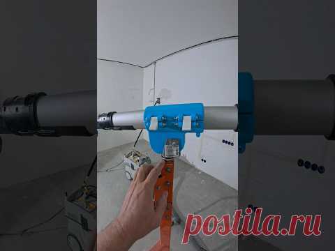 На изображении видно, как человек работает с полимерным сварочным аппаратом для соединения пластиковых труб. Такой инструмент используется для монтажа систем отопления, водопровода и канализации из полипропилена.