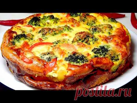 На изображении запеченная омлет-кассероль или пирог с овощами. Казалось бы, есть куски брокколи и помидоры, и все это запечено до золотистой корочки.