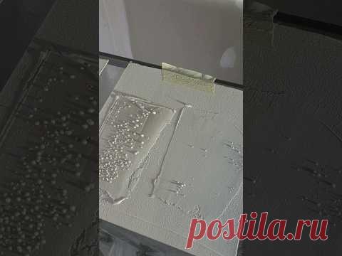 На изображении представлен предмет, покрытый каплями воды, возможно, это кафельная плитка. Слева находится темная половина изображения, где детали не различимы. Справа видна светлая поверхность с блестящими каплями.