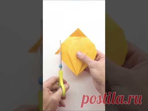 На изображении руки человека, которые занимаются созданием оригами из желтой бумаги. Одна рука держит фигуру, в то время как другая рука использует складной инструмент, чтобы сформировать углы у бумажной фигуры.