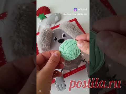 На изображении человек вручную создает поделку в виде кожуры с изображением милого животного. Рядом расположены инструменты и материалы для творчества.